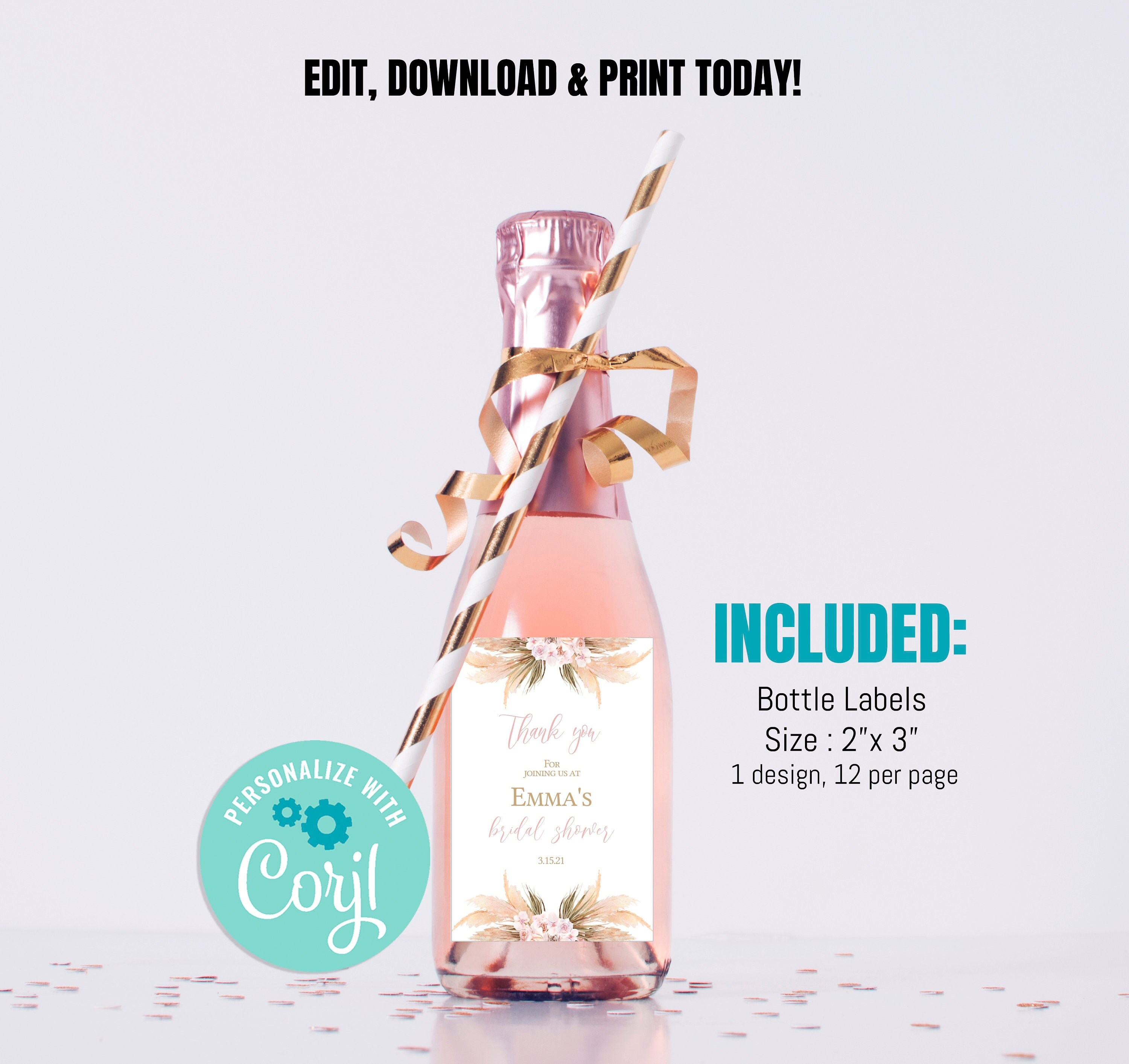 EDITABLE Mini Wine Bottle Labels Pampas Grass Bridal Shower Bottle Label, Digital, Instant download template, Boho Bridal Shower Theme